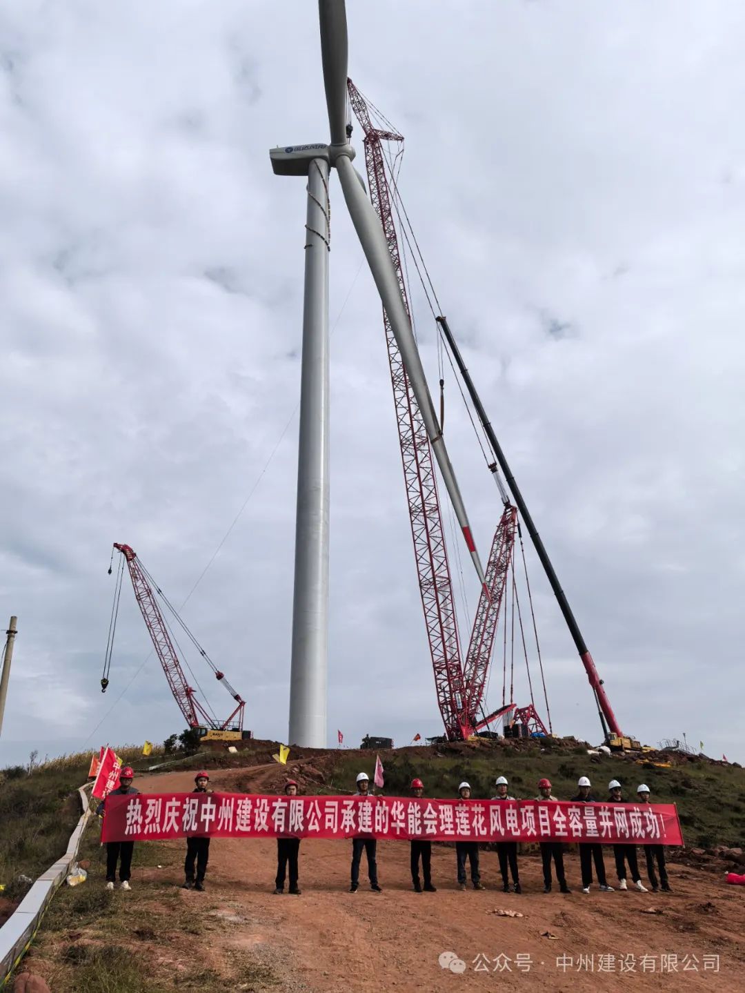 2024年10月24日,由中州建設有限公司承建的華能涼山州會理蓮花103.5MW風電項目PC工程最后一臺風機吊裝成功。至此,華能涼山州會理蓮花項目23臺風機吊裝全部完成,項目全容量并網(wǎng)成功!